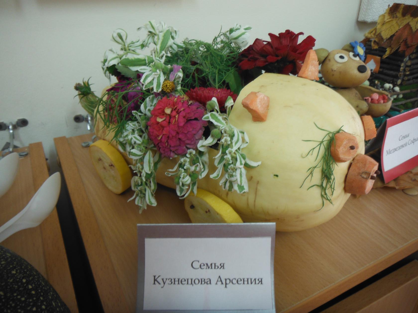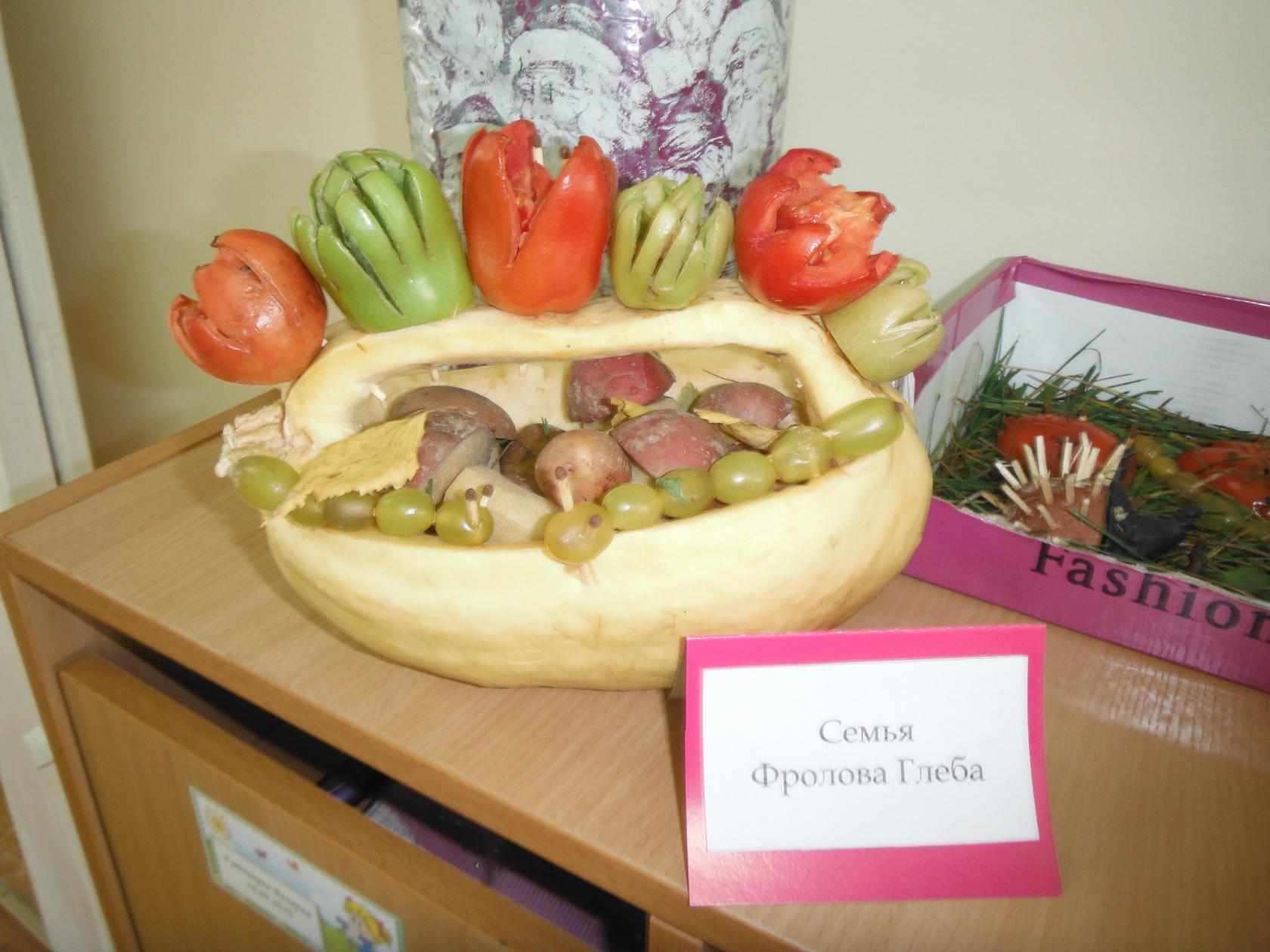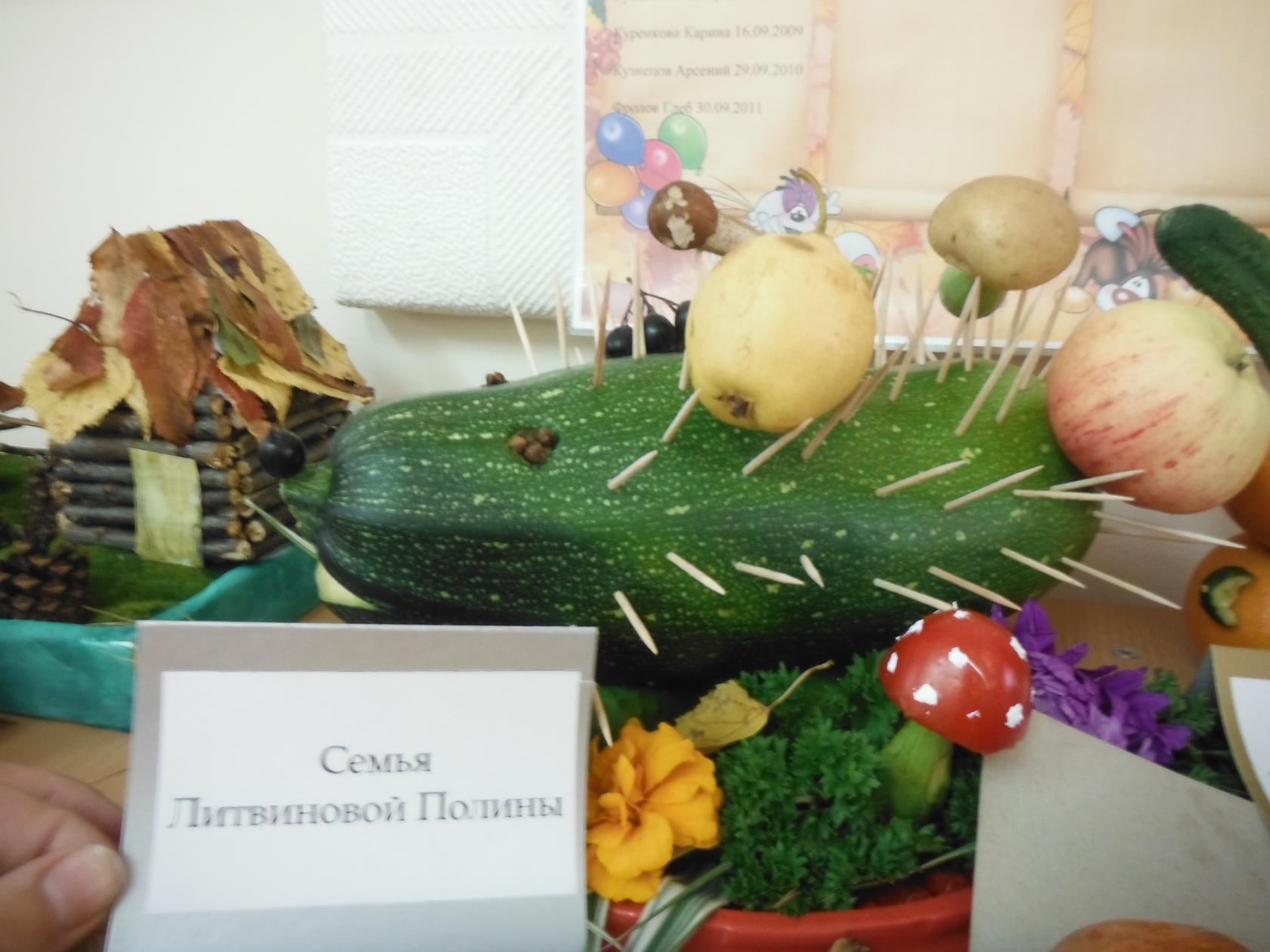 В рамках тематической недели "Витаминная корзинка (Фрукты и Овощи)" в старшей разновозрастной группе "Светлячок" была организована выставка из овощей и фруктов "Осенняя фантазия". Из обычный овощей и фруктов, произрастающих в наших огородах и садах, ребята совместно со своими родителями представили на выставку самые разные поделки. По итогам выставки все ребята получили сертификаты, подтверждающие их участие: Ананьиной Кристине, Андрианову Ивану, Гутниковой Валерии, Калинкину Егору, Карпову Никите, Кириллову Денису, Куренковой Карине, Литвиновой Полине, Медведевой Софье, Фомченкову Илье, Фролову Артему, Фролову Глебу и Фролову Егору.