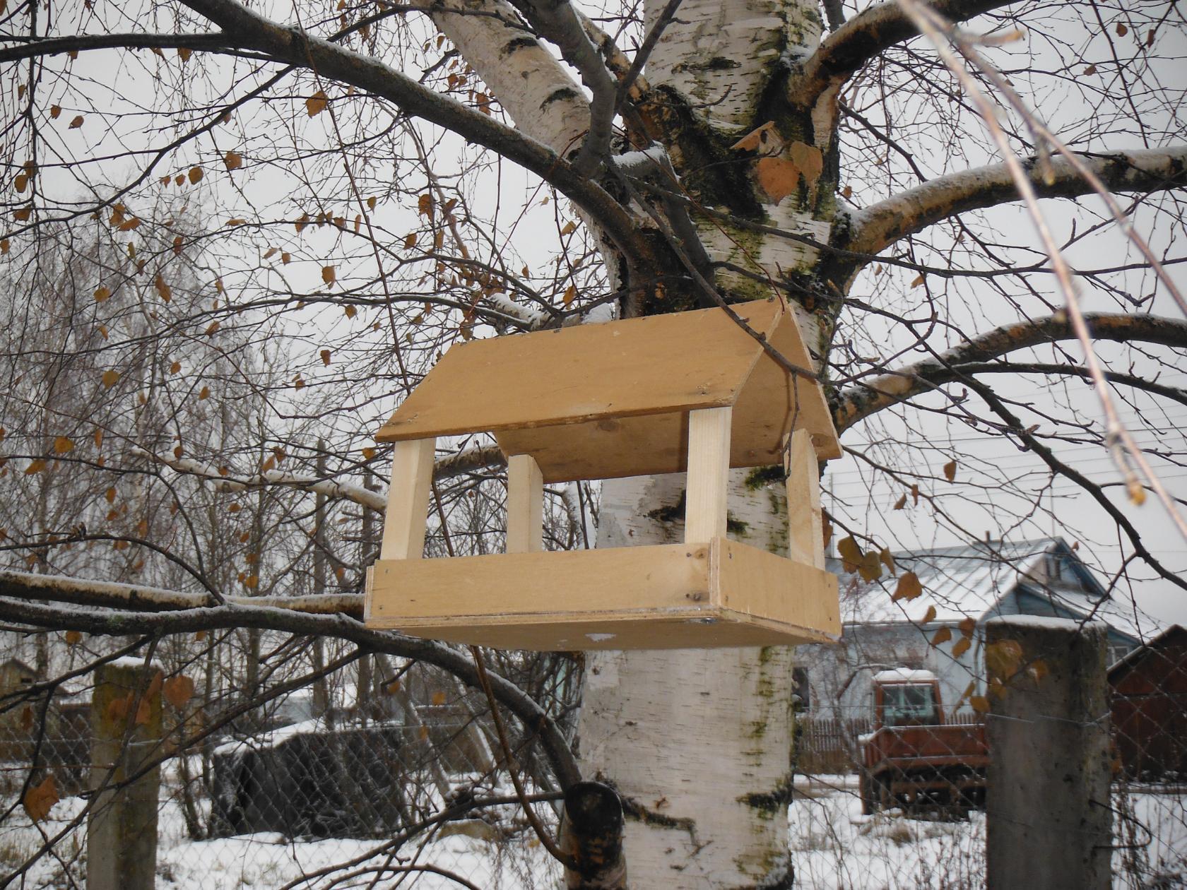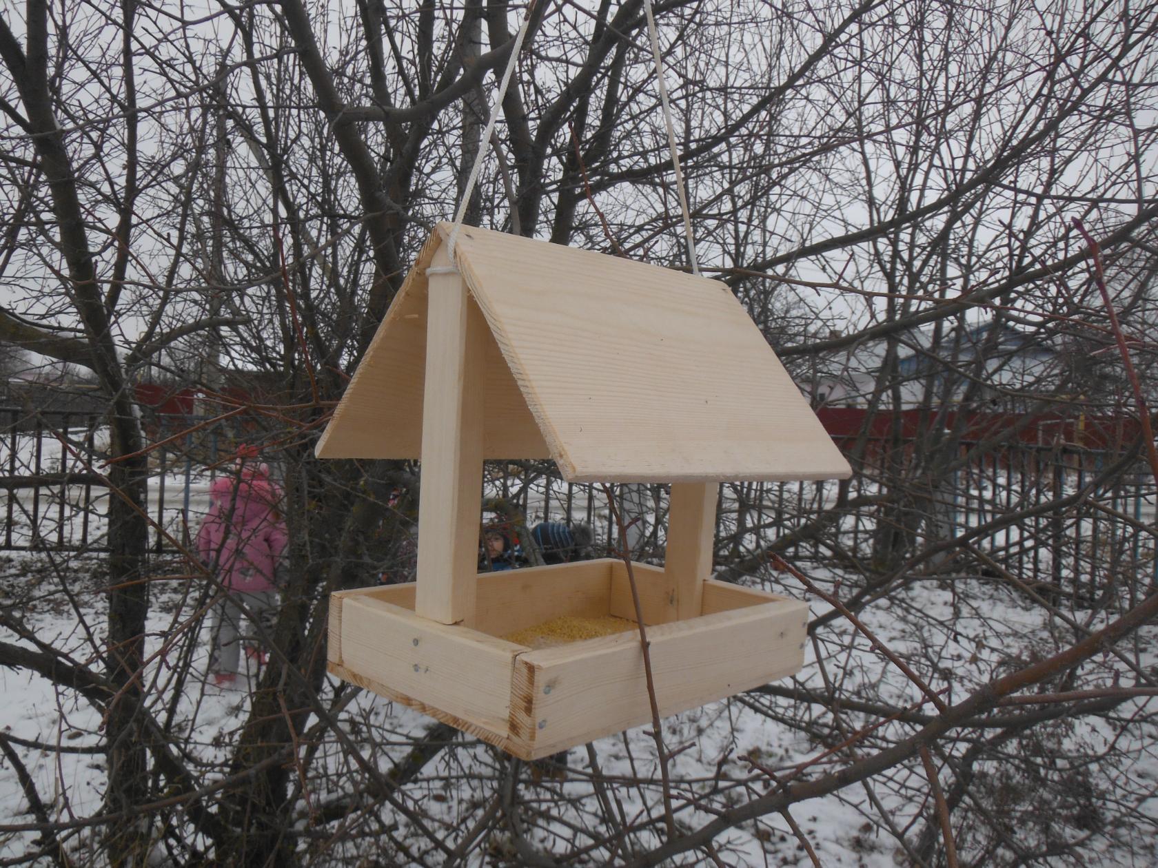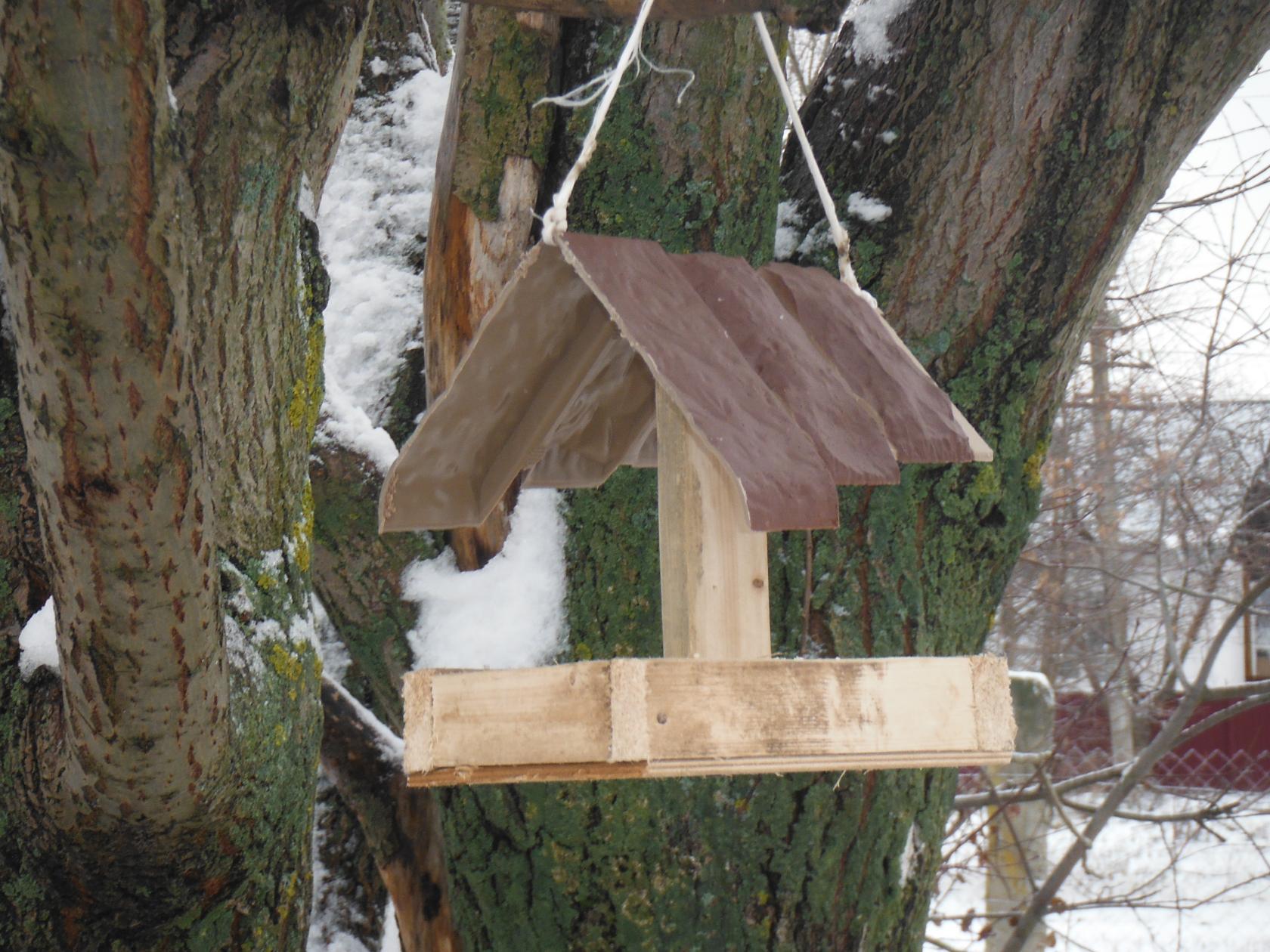 Удобную кормушку повесить на сучок.