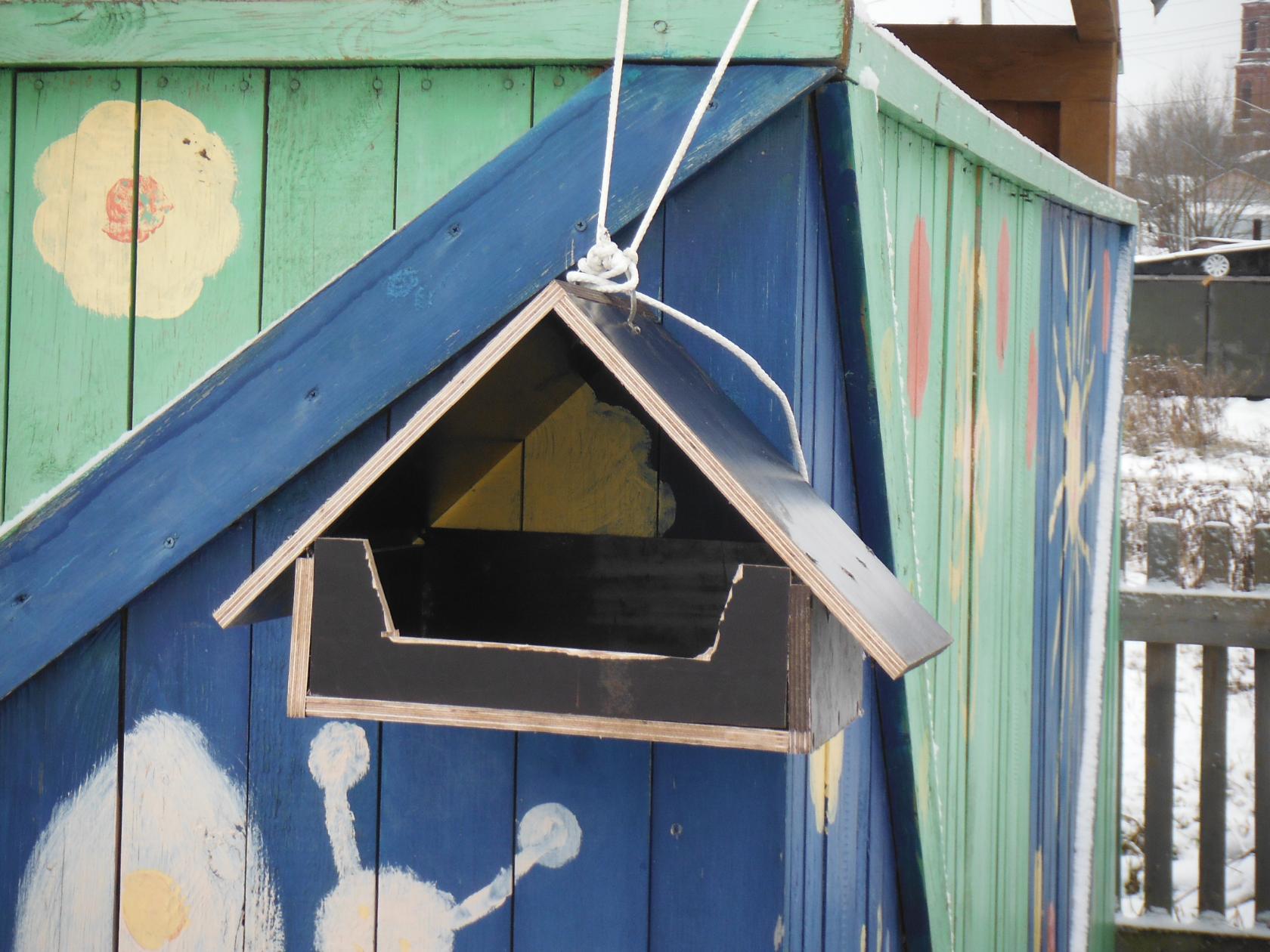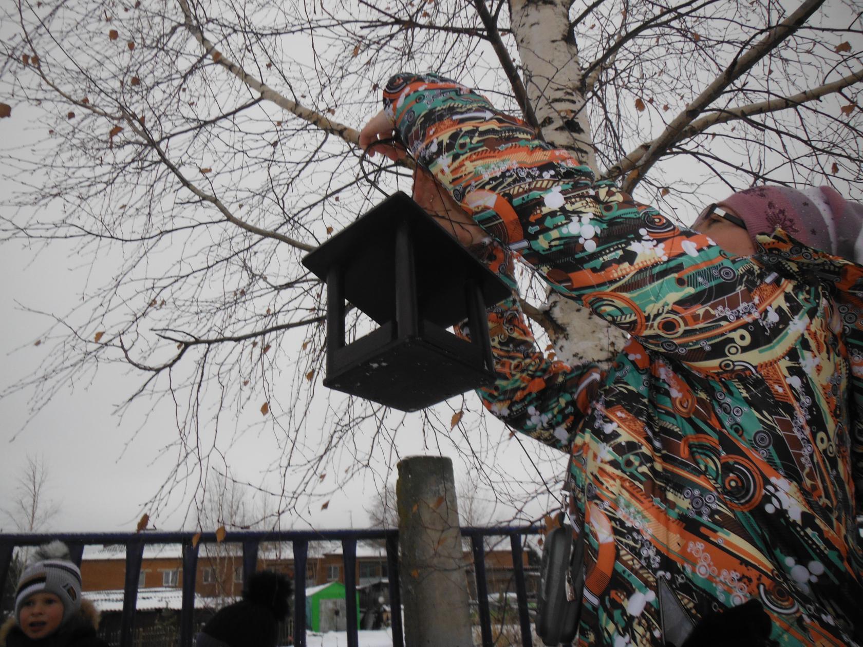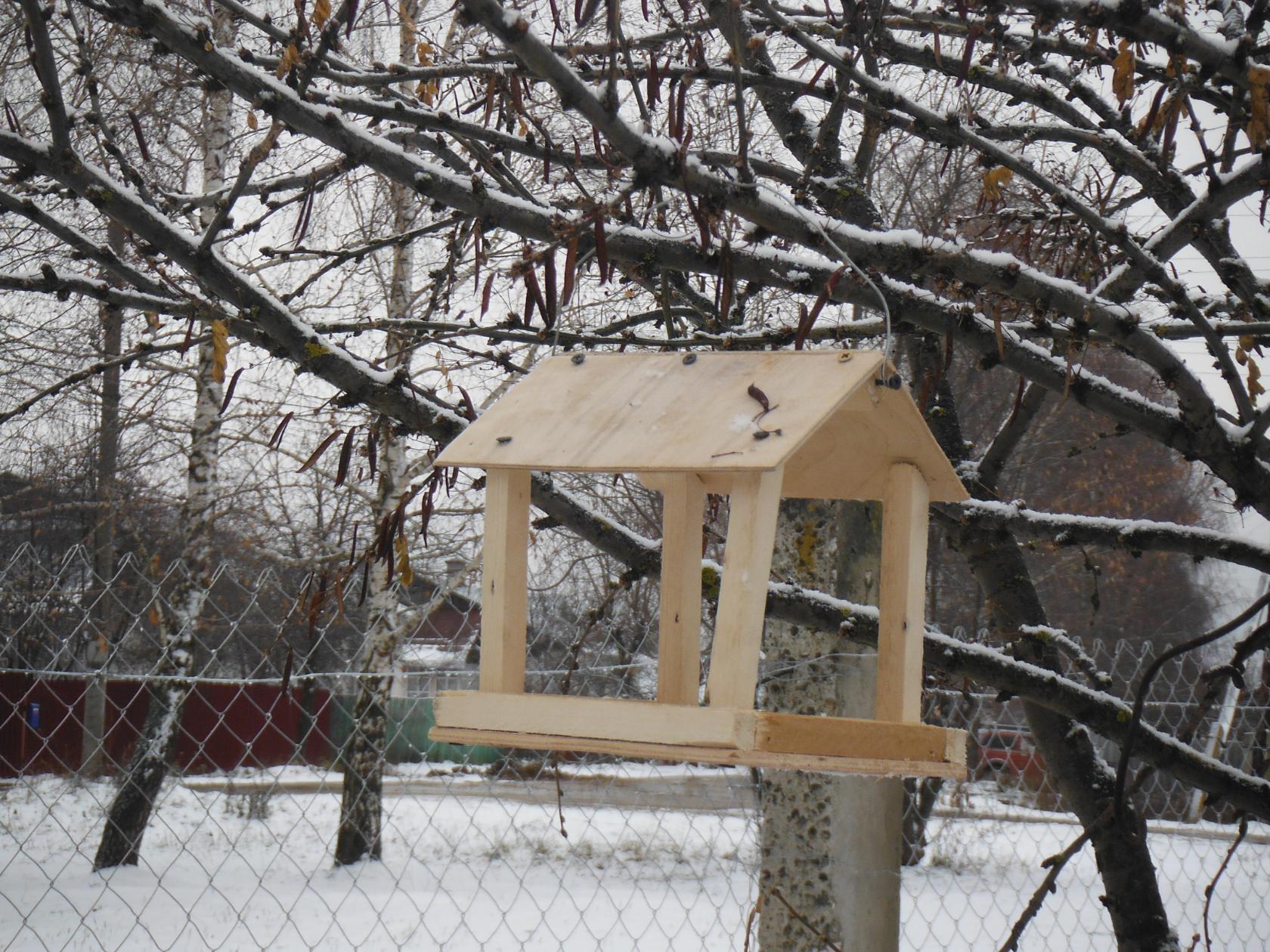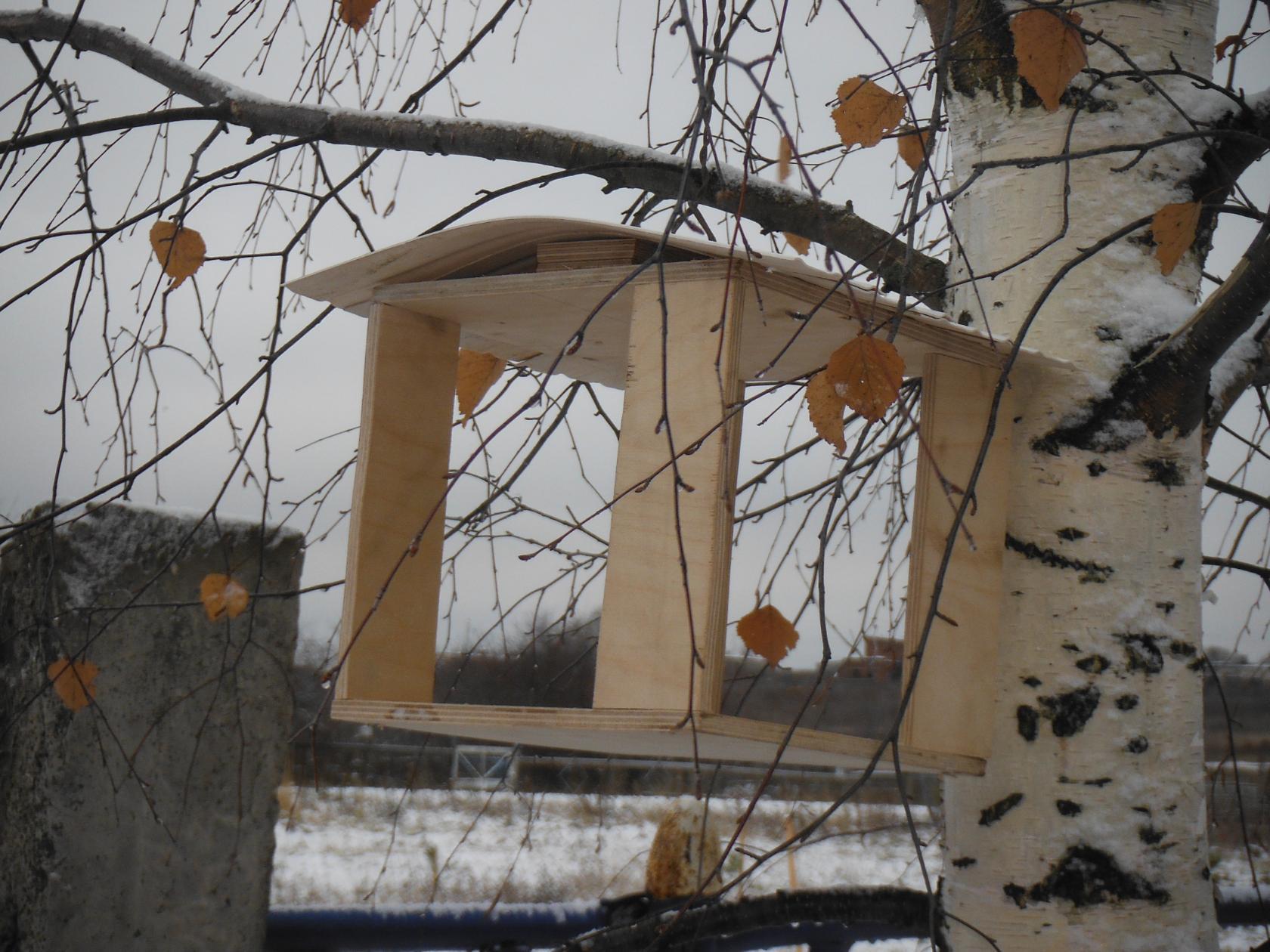 Удобную кормушку повесить на сучок.
