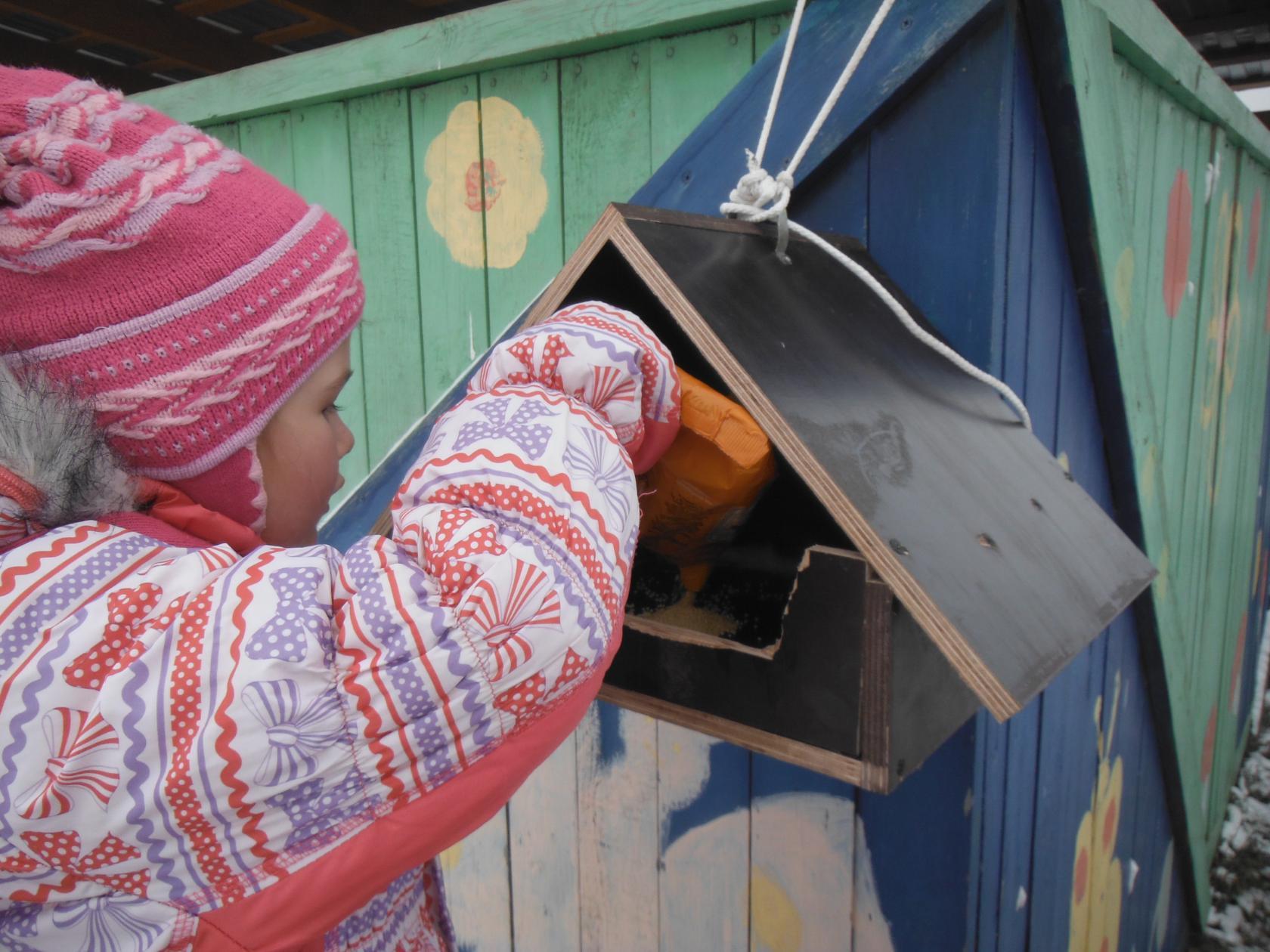 Теперь во время прогулок ребята будут кормить птичек и наблюдать за их поведением. Символично, что первым посетителем зимней столовой стала именно синичка!