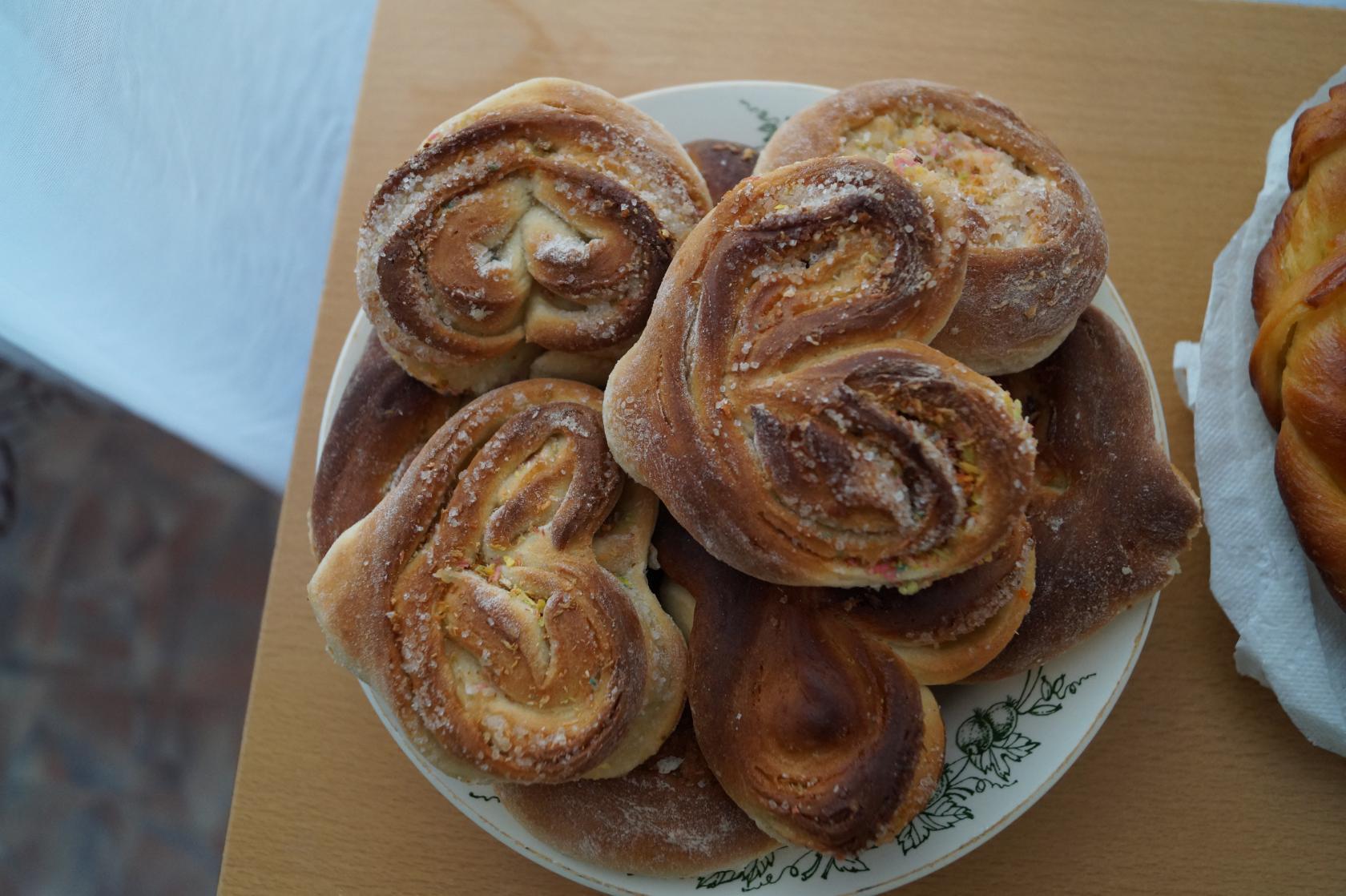 Итогом тематической недели стал праздник "Хлебушек душистый, теплый золотистый". Детям было предложено еще раз вспомнить, какой трудный путь проходит хлеб, прежде чем попасть к нам на стол. Воспитатель группы показал видеопрезентацию, иллюстрирующую все этапы его производста. Украшением праздника стал танец девочек с колосками. О ценности совместного труда при производстве хлеба поведали юные актеры, инсценировавшие сказку "Колосок". Во время праздника прошла выставка хлебобулочных изделий "Вот он хлебушек душистый", где ребята увидели и пироги, и булочки, и блины, и каравай, и тортики. Мамы постарались на славу! В выставке приняла участие и заведующая ДОУ Ермакова С.Б. Праздник хлеба закончился в групппе, где ребят ждало чаепитие со всеми вкусностями, которые они увидели на выставке.